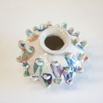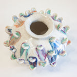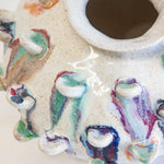 Recycled glaze droplets collected from my kiln shelves have been applied to each petal to be melted a second time, this makes this vase truly one of a kind!