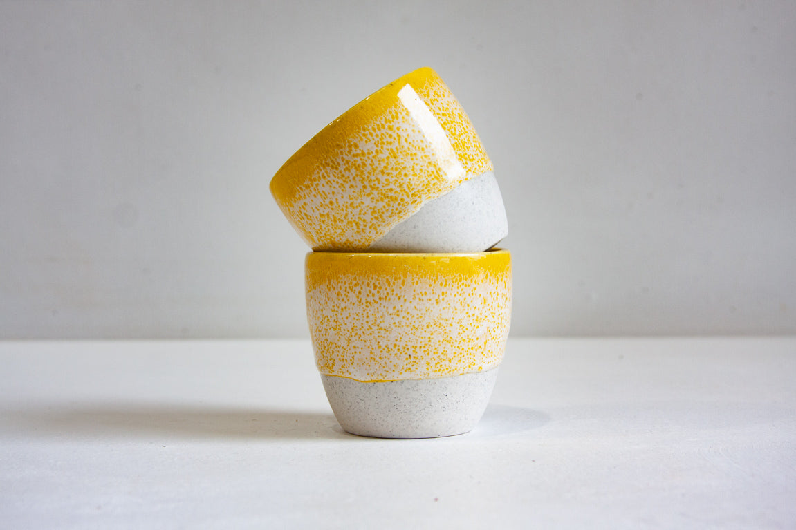 Handmade means one-of-a-kind. Each cup is made in small batches, shaped by hand and finished with care. Every piece has its own gentle, organic form—subtle curves and natural variation that you only get from true handmade ceramics. Expect small differences in shape and glaze from cup to cup; these aren’t flaws, they’re the fingerprint of the process and what makes your cup uniquely yours.