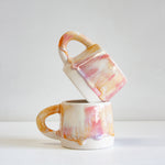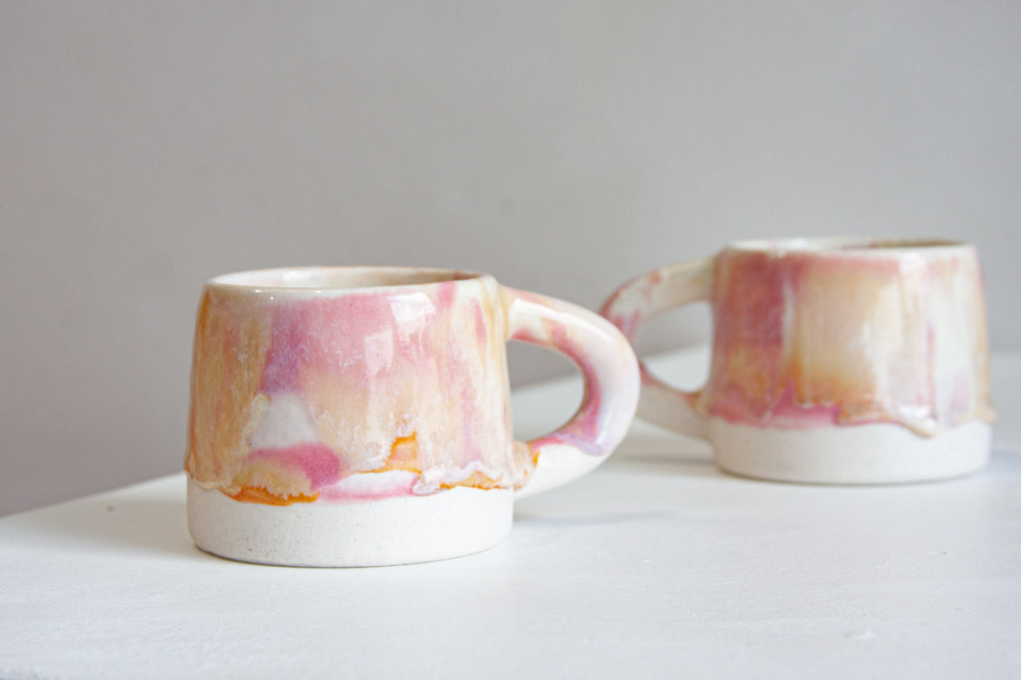 These ceramic mugs have been made using a white speckle clay and glazed in soft pinks and creams.