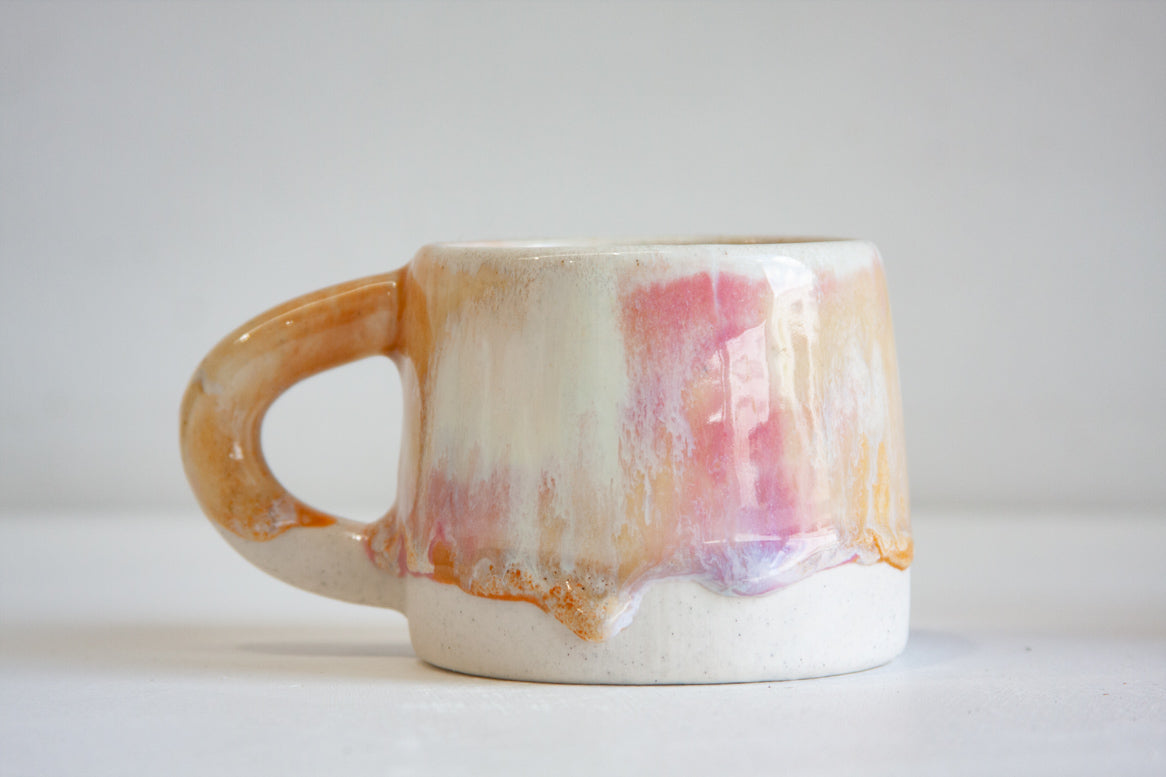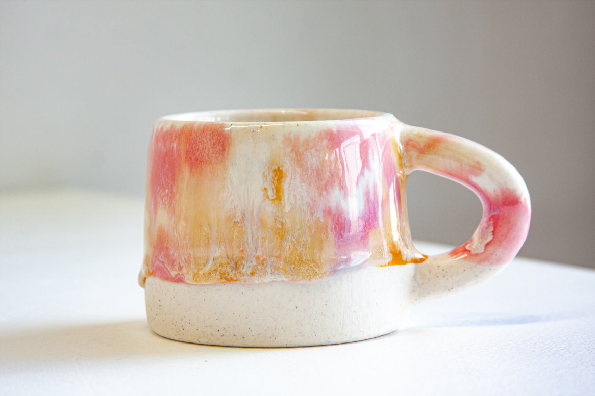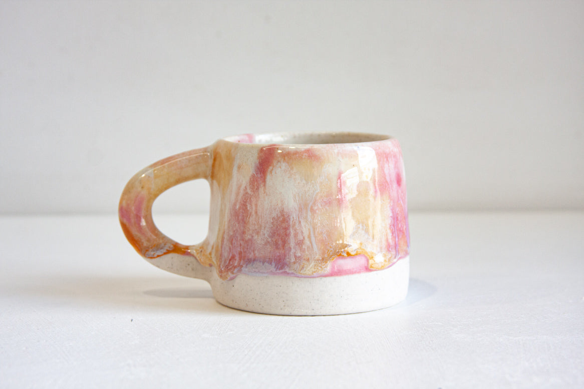 handmade ceramic pink, peach and white mug