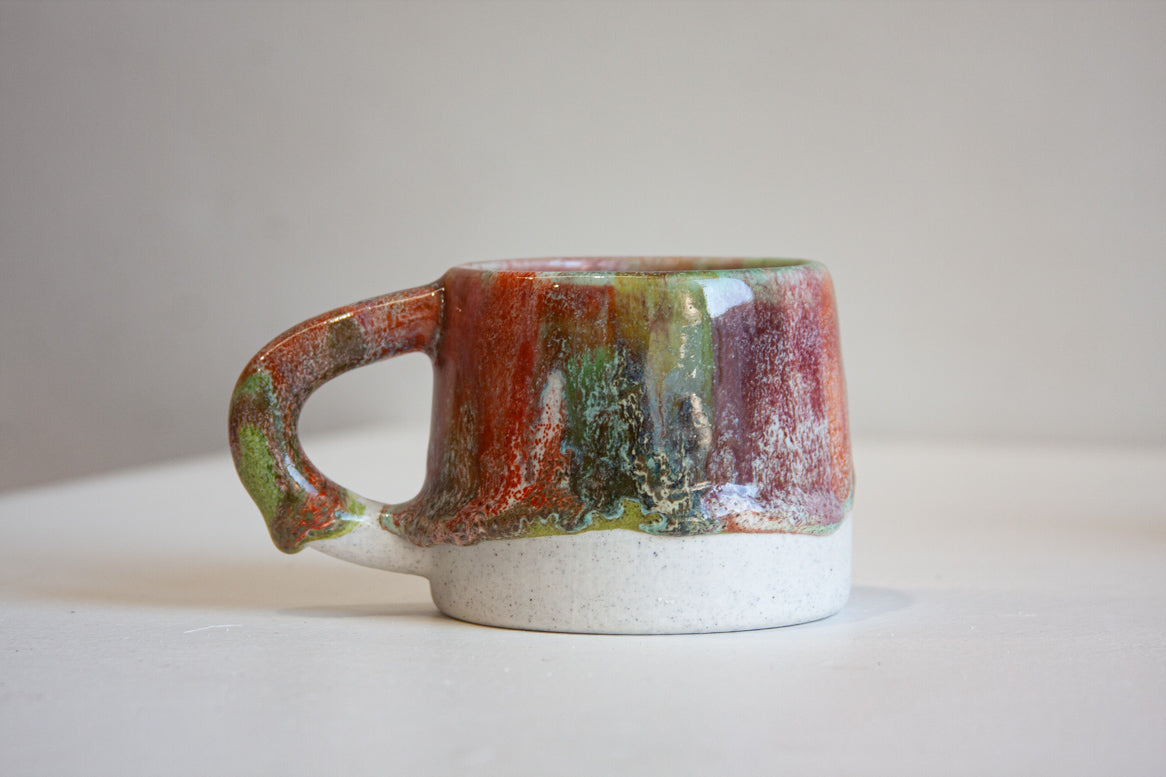Glazed in multiple colours such as as deep pink, green, orange, brown, red and white.