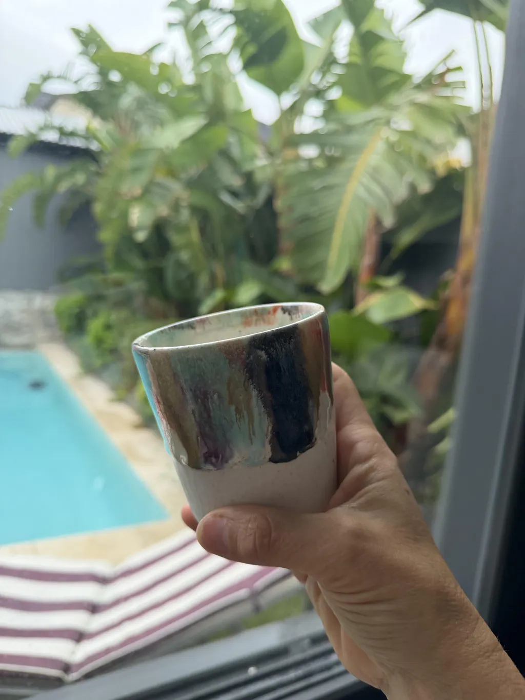 The variegation on each cup is unique in this colour range, as is the amount of fluidity from the glaze. Some mugs have more pink, more blue or white glaze.
