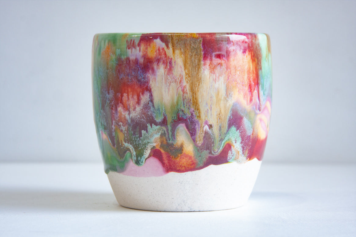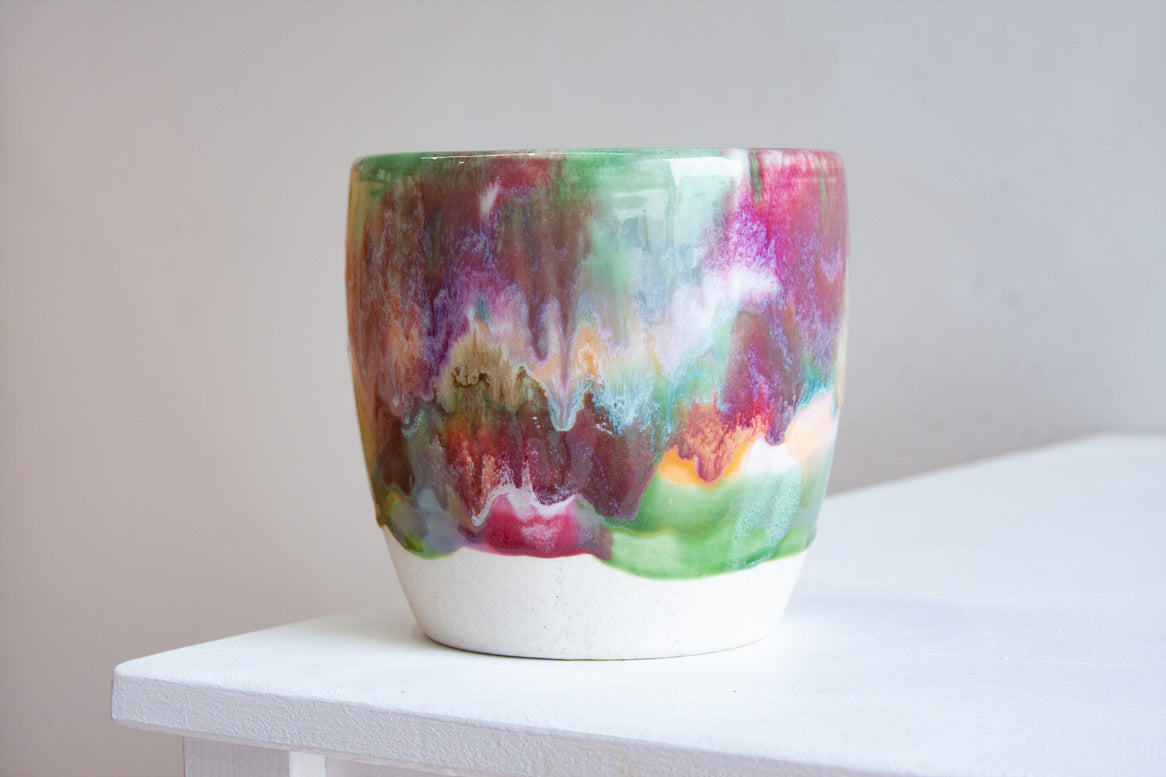 Handmade ceramic planter made using a speckled white clay.