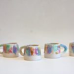 These mugs have been handmade using a white speckled clay.