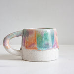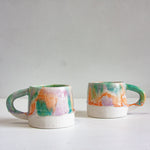 These mugs have been handmade using a white speckled clay and glazed in pastel shades of purple, green and peach.