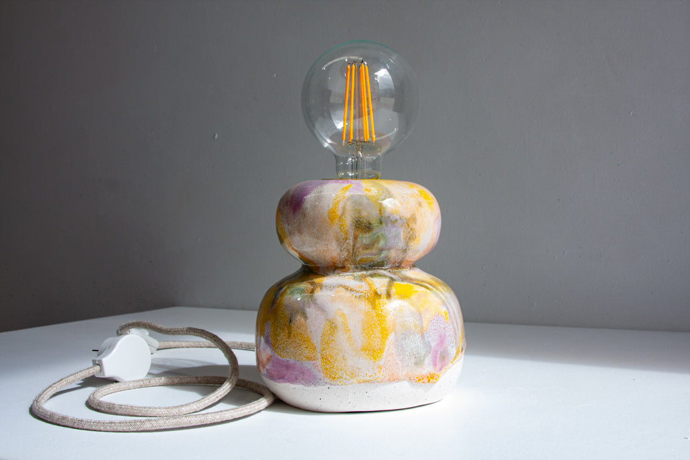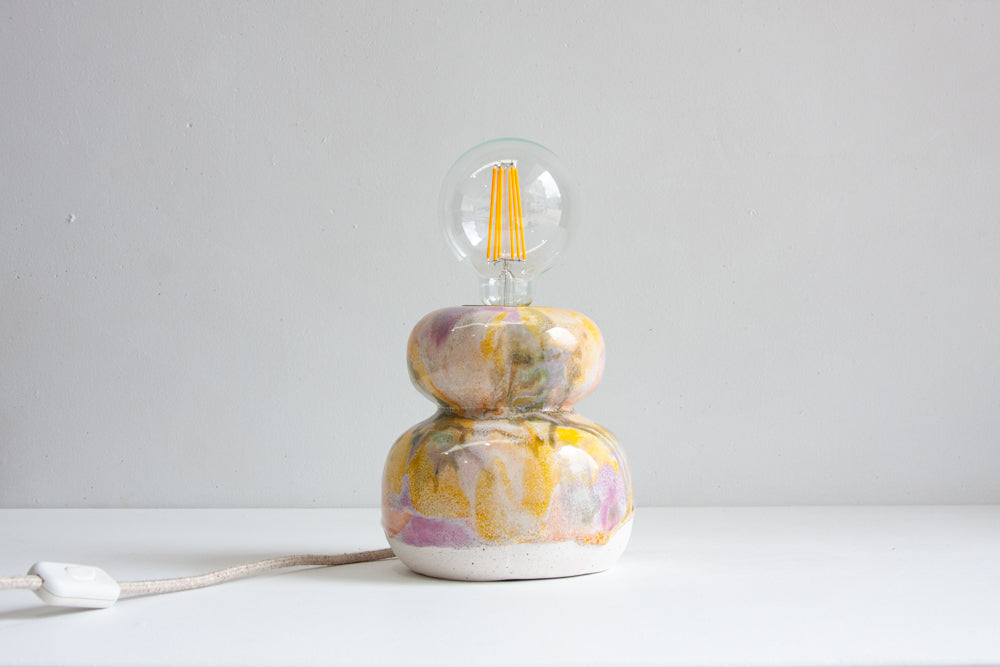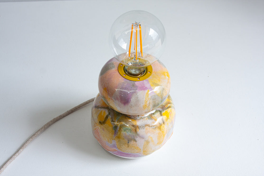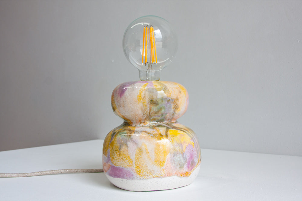 Handmade Ceramic Smoosh Lamp - Purple & Yellow