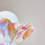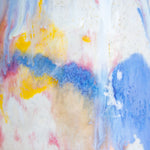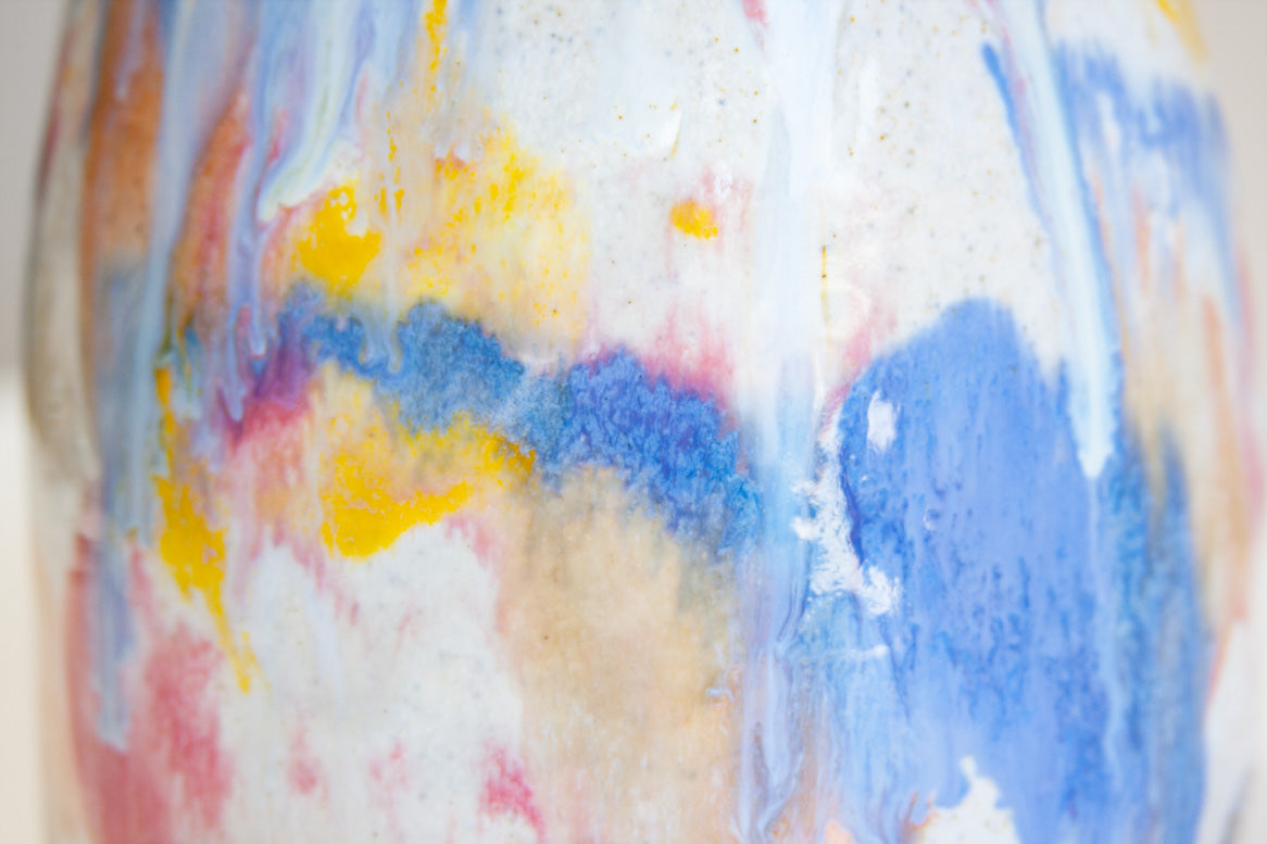 Glazed in yellow, pink, peach and blue.