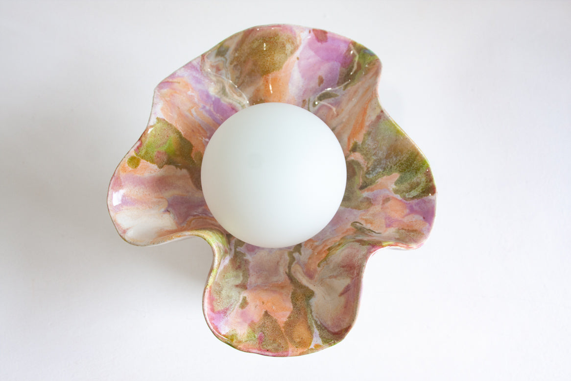 These ceramic table lamps takes its form from the sculptural layers of an oyster shell—organic, rippled, and quietly luminous. Each piece is individually crafted and finished by hand, so no two are exactly alike.