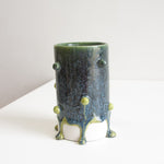 Handmade Ceramic Large Bauble Cylinder Vase - Dark Blue & Moss Green