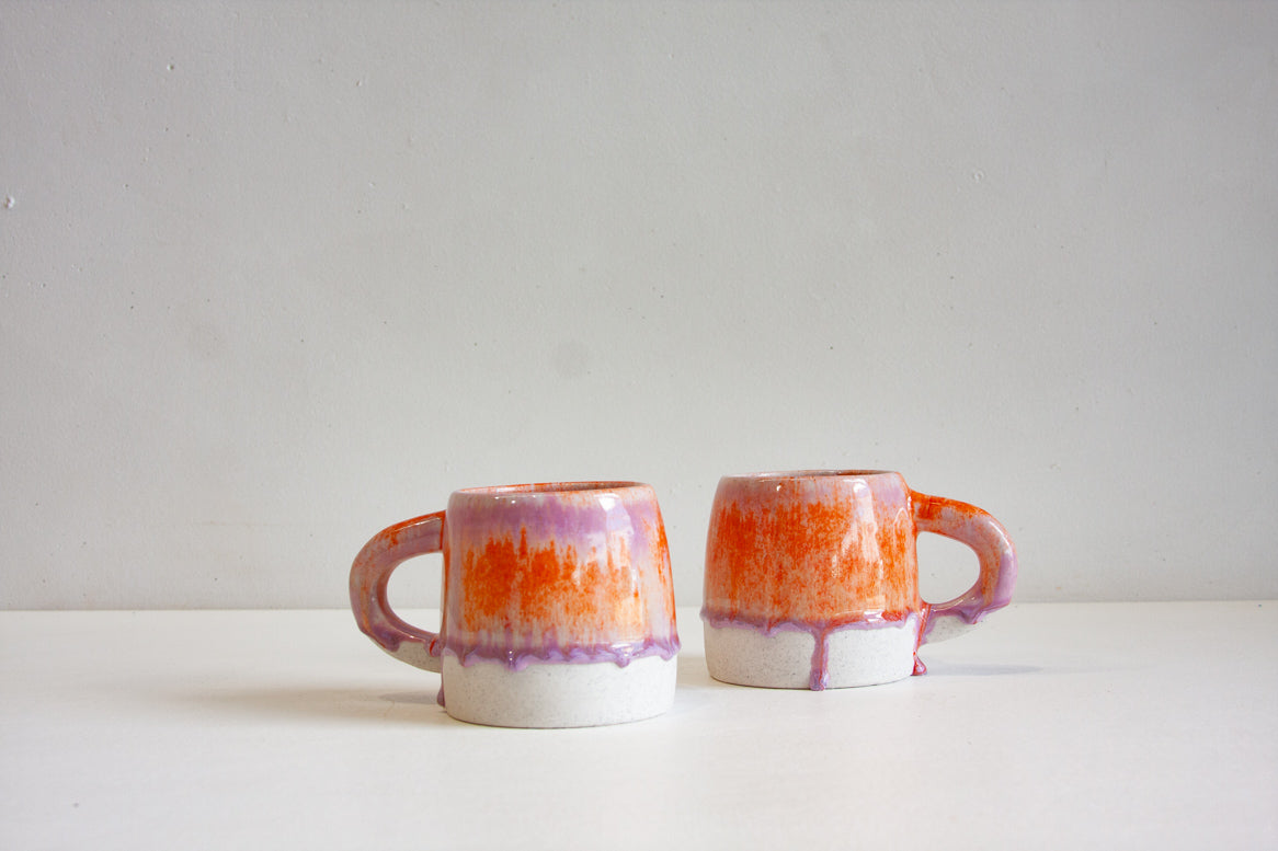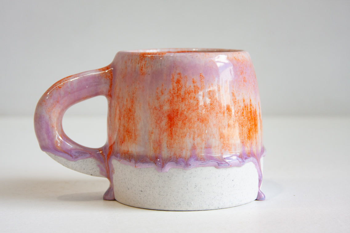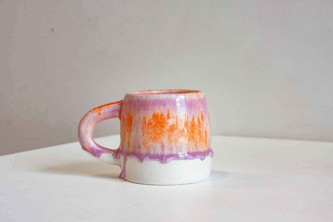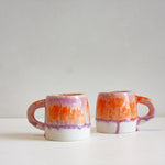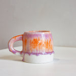 The variegation on each cup is unique in this colour range, as is the amount of fluidity from the glaze. Some mugs have more pink, more blue or white glaze.